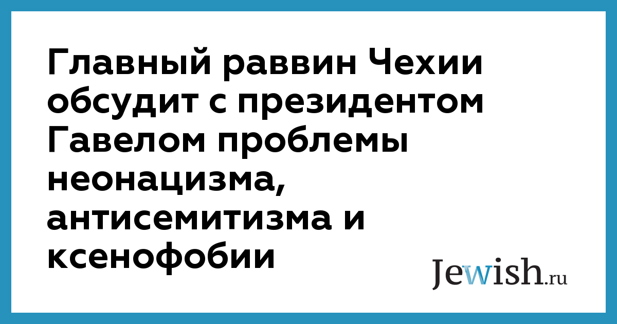 Главный раввин Чехии обсудит с президентом Гавелом проблемы неонацизма, антисемитизма и ксенофобии