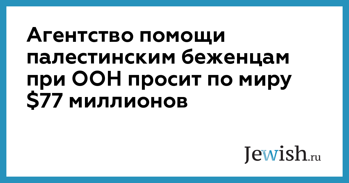 Агентство помощи палестинским беженцам при ООН просит по миру $77 миллионов