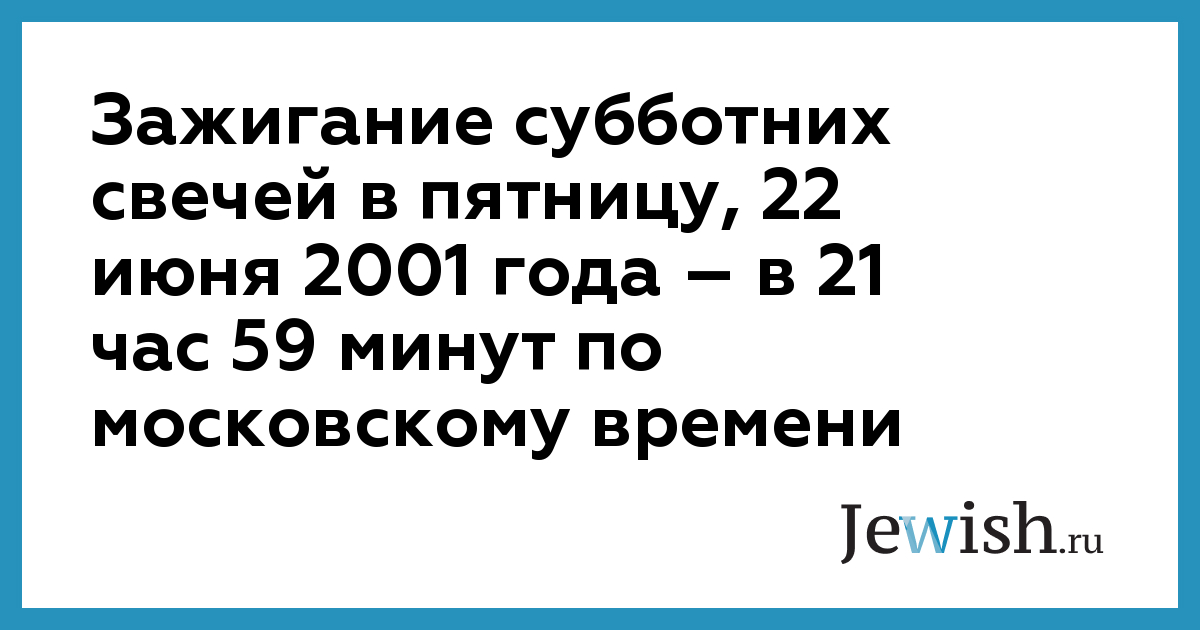 Зажигание субботних свечей в пятницу, 22 июня 2001 года – в 21 час 59 минут по московскому времени