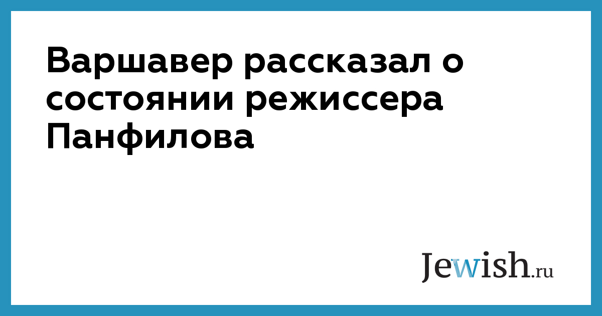 Варшавер рассказал о состоянии режиссера Панфилова