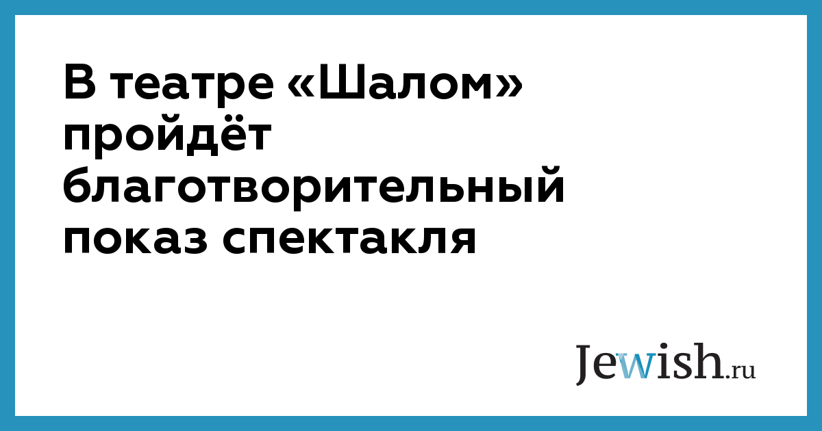 В театре «Шалом» пройдёт благотворительный показ спектакля