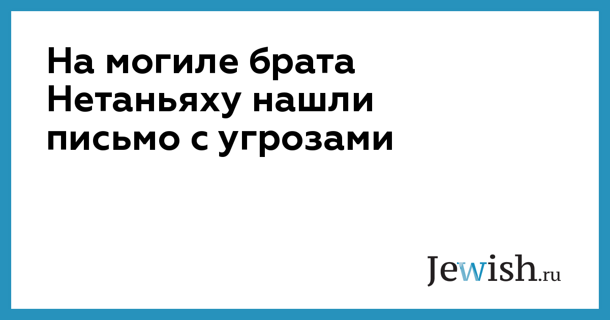 В пятницу, 30 июня, на могиле брата премьер-министра Израиля Йонатана Нетаньяху на горе Герцль было найдено письмо с угрозами в адрес Биньямина Нетаньяху. Как сообщает JPost, расследованием инцидента уже занялся ШАБАК.
