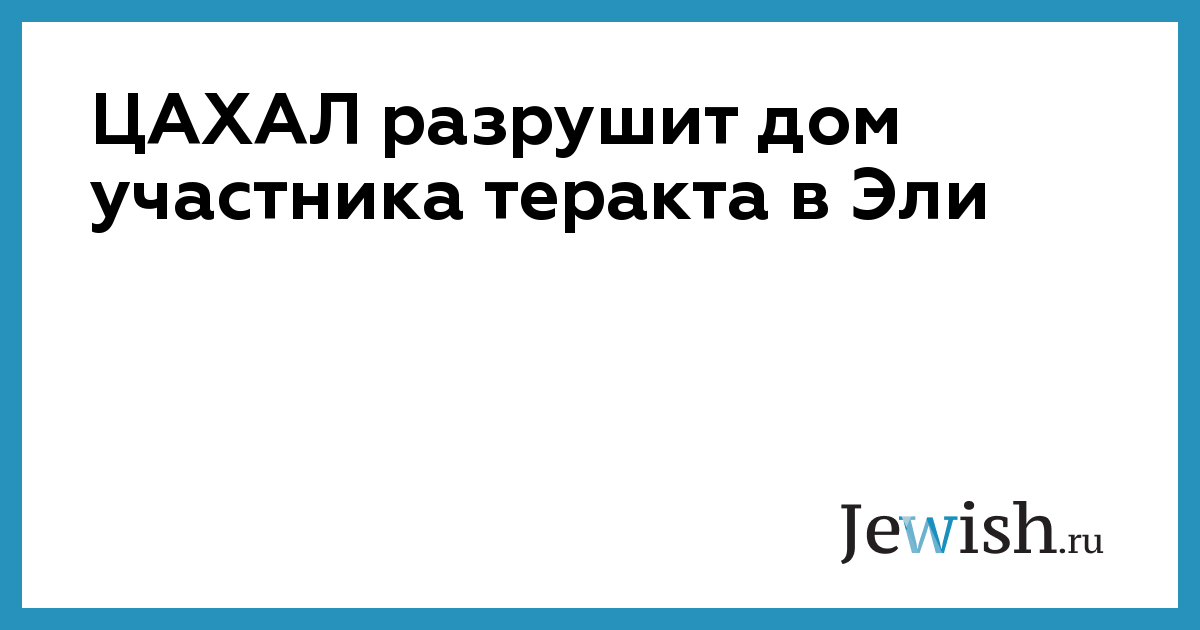 ЦАХАЛ разрушит дом участника теракта в Эли