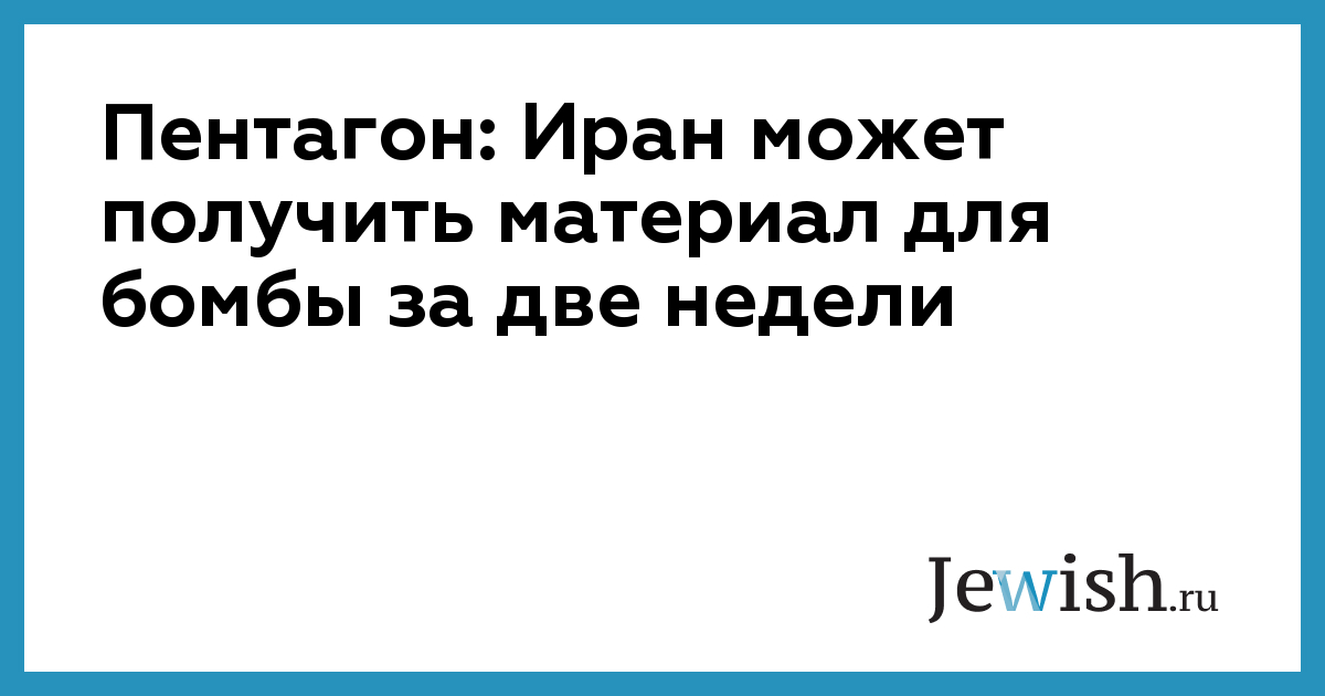 Минобороны США заявило, что Иран менее чем за две недели может произвести достаточно материала для ядерной бомбы, со ссылкой на отчет «Стратегия противостоянию оружию массового поражения» сообщает JPost. Впрочем, в публикации отмечается, что из одного только обогащенного урана бомбу не сделаешь, а на создание других компонентов – например, ядерной боеголовки – потребуется время.