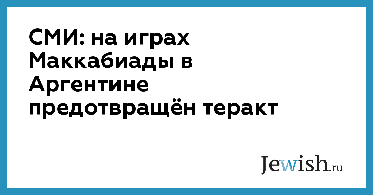 СМИ: на играх Маккабиады в Аргентине предотвращён теракт