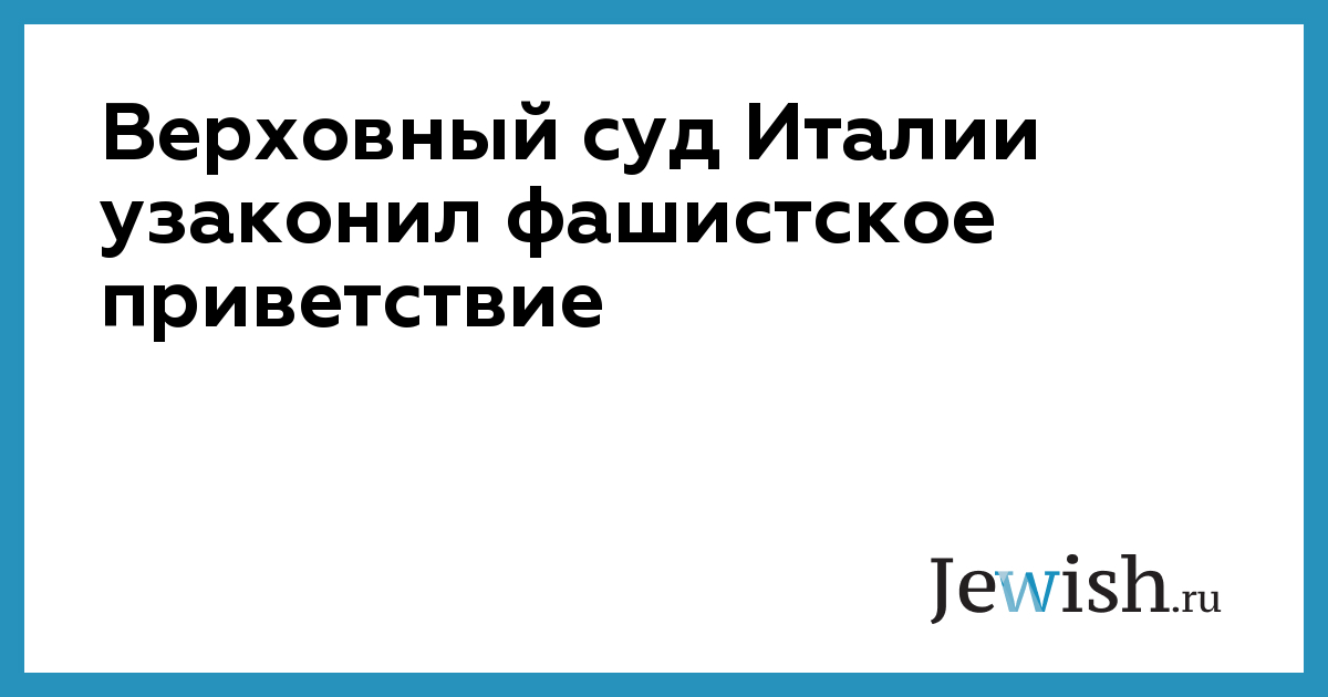 Верховный суд Италии постановил, что римское приветствие, которое в том числе использовалось в фашистской Германии, не противоречит законам республики и может применяться в частном порядке, если оно не несет риски возрождения фашистской партии. Об этом сообщает портал Rainews.