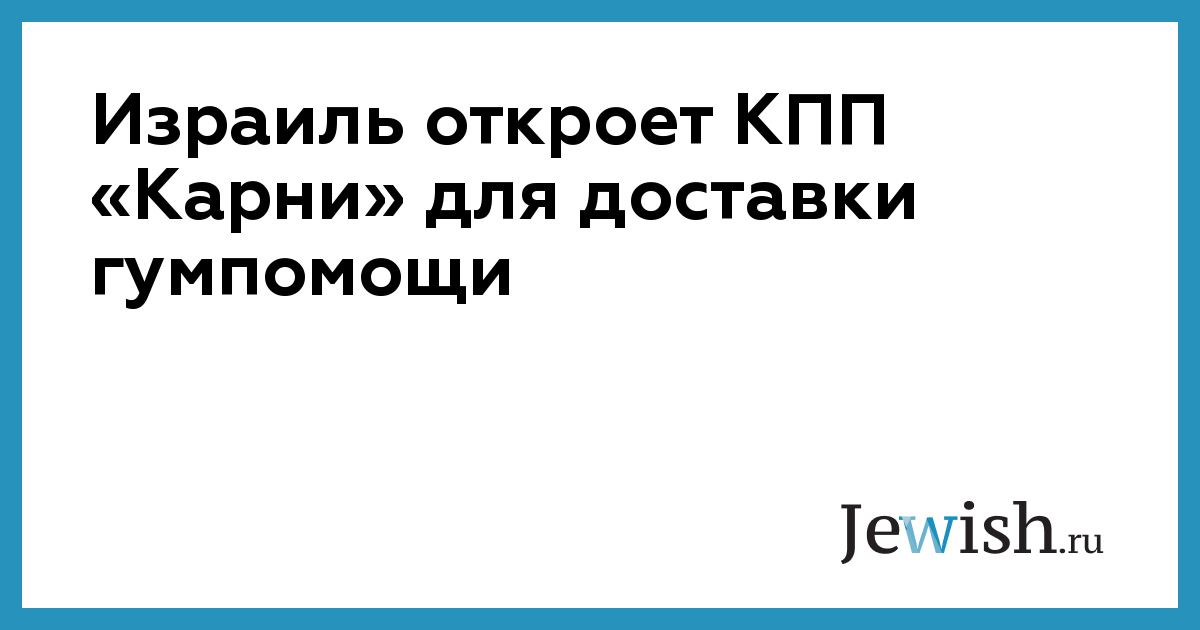 Израиль планирует возобновить работу давно не функционирующего КПП «Карни» на границе с Газой, расположенного в полутора километрах от кибуца Нахаль-Оз, чтобы обеспечить прямые поставки гуманитарной помощи в северную часть анклава.