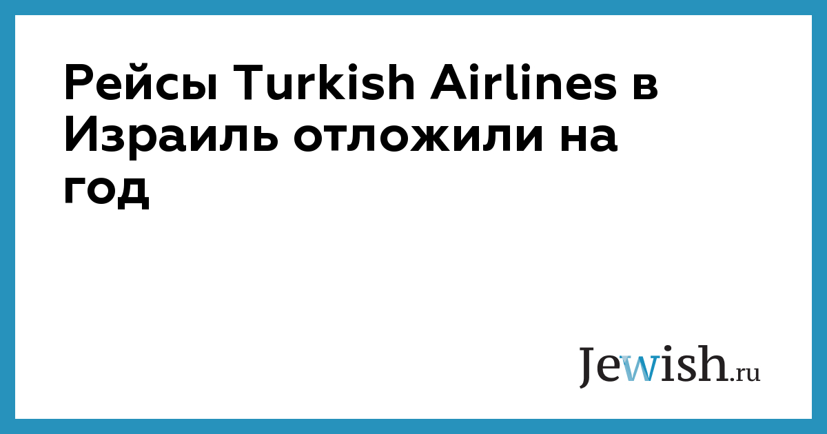 Турецкий флагманский авиаперевозчик Turkish Airlines не возобновит авиасообщение с Израилем еще как минимум год, сообщает Globes. Официального заявления авиакомпания не делала, но издание выяснило, что рейсы Тель-Авив – Стамбул, которые были доступны для бронирования, теперь значатся как отмененные.