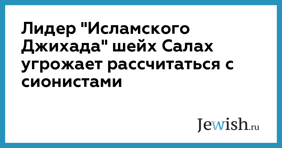 Лидер "Исламского Джихада" шейх Салах угрожает рассчитаться с сионистами