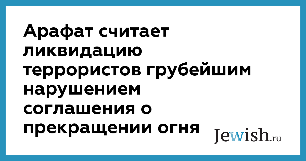 Арафат считает ликвидацию террористов грубейшим нарушением соглашения о прекращении огня
