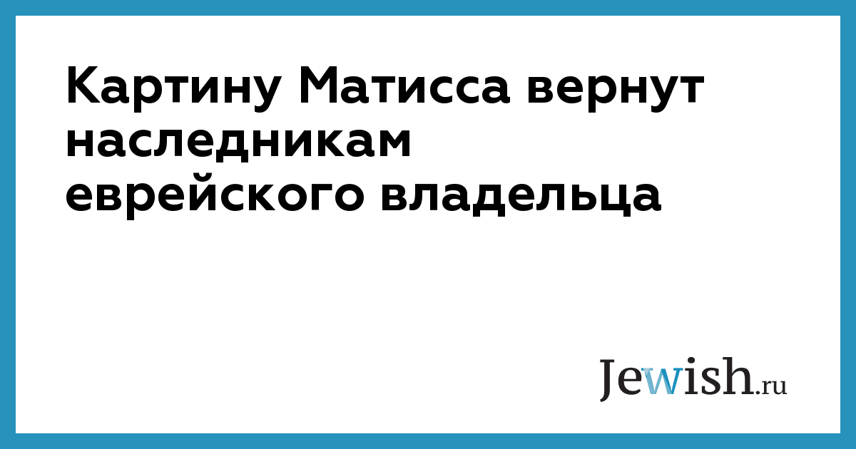 Картину Матисса вернут наследникам еврейского владельца