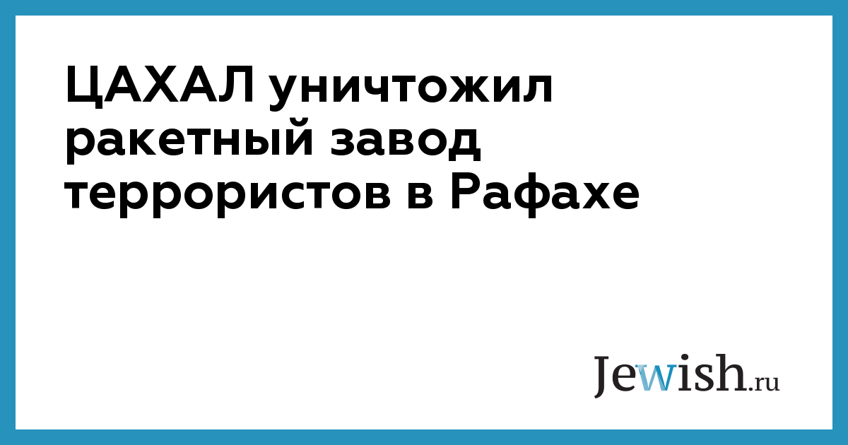 Израильские военные обнаружили и уничтожили в Рафахе подземный завод по производству ракет запрещенного в России «Исламского джихада», террористы которого воюют бок о бок с ХАМАСом, сообщает The Times of Israel со ссылкой на заявление армейской пресс-службы. Это крупнейший из обнаруженных на сегодняшний день промышленных комплексов террористов, отметили в ЦАХАЛе.
