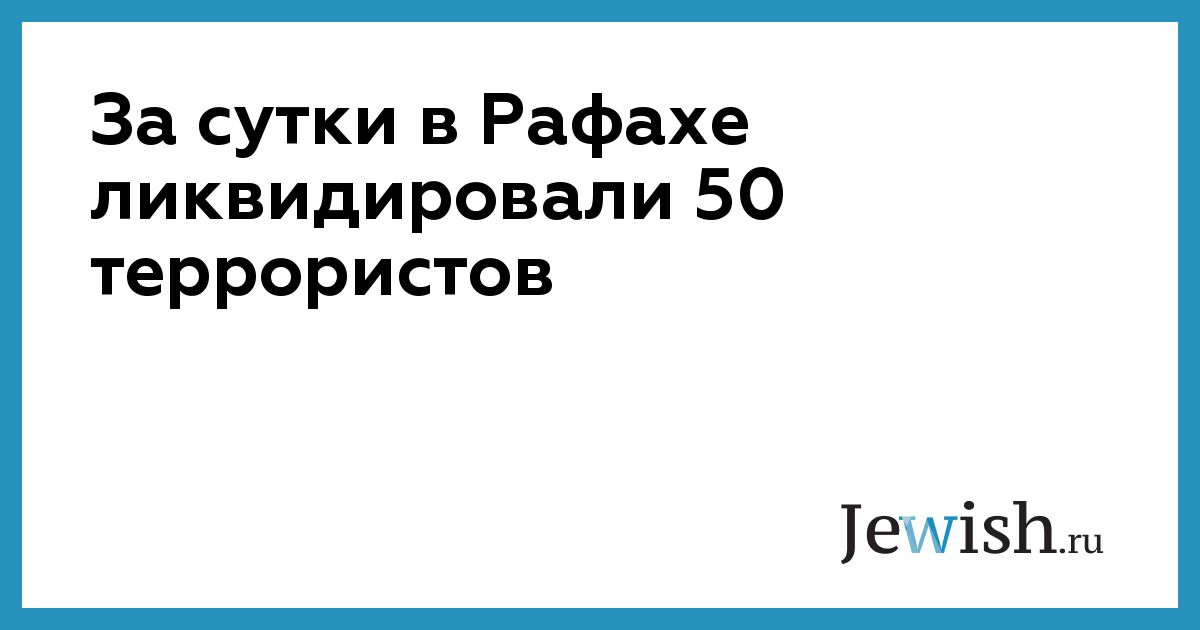 По данным утреннего отчета пресс-службы Армии обороны Израиля, за последние сутки в районе Тель-Султан в Рафахе бойцами 162-й дивизии были ликвидированы около 50 террористов. В частности, солдаты из бригады «Нахаль» заметили группу боевиков, которые готовились на них напасть, и нанесли удар с помощью беспилотников.