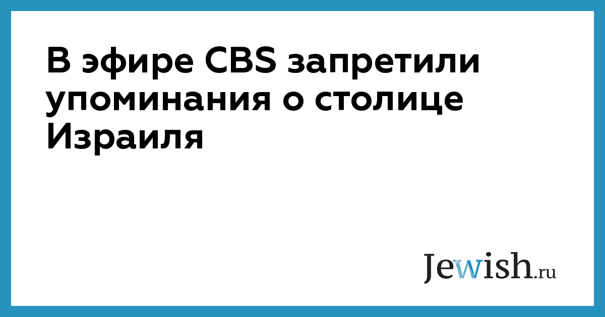 Журналистам CBS News запретили называть Иерусалим частью Израиля, сообщает The Jerusalem Post. Соответствующую директиву еще в августе сотрудникам канала разослал исполнительный директор вещателя Марком Меммот. В ней он настоятельно рекомендовал «избегать высказываний о том, что Иерусалим находится в Израиле», отметив, что «статус Иерусалима лежит в основе израильско-палестинского конфликта».