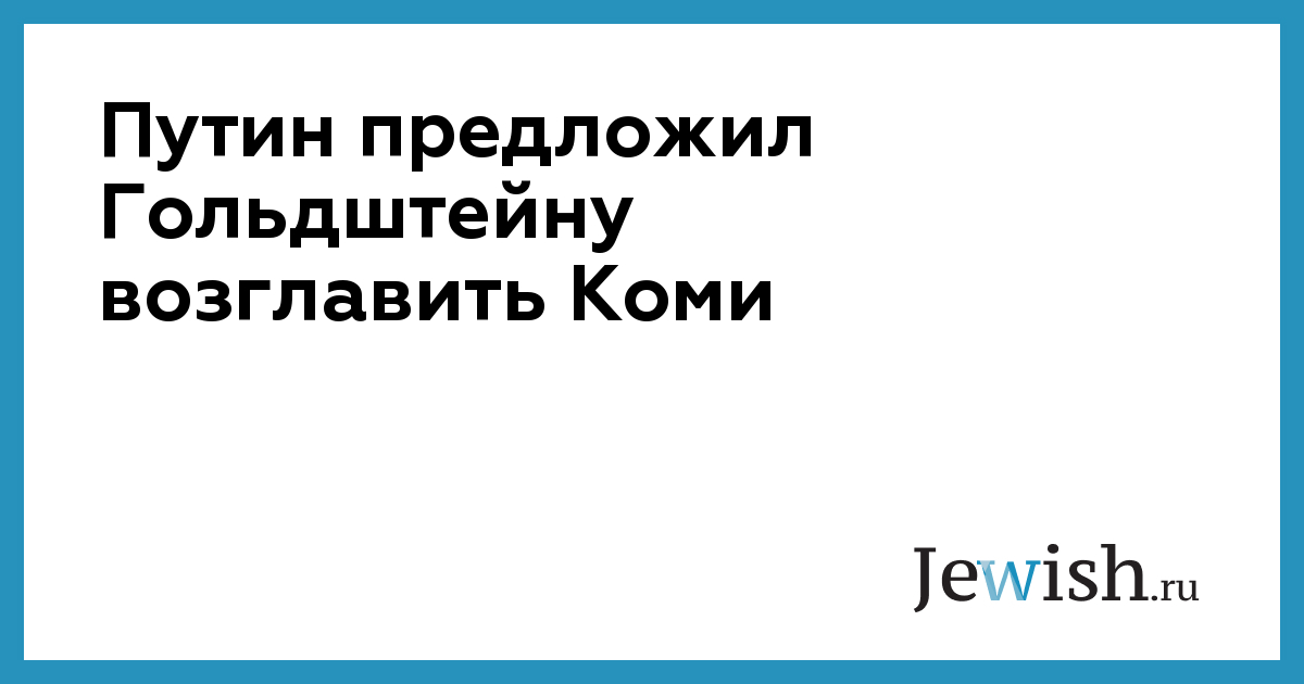 Президент России Владимир Путин предложил губернатору Еврейской автономной области (ЕАО) Ростиславу Гольдштейну возглавить Республику Коми, сообщает РБК. Гольдштейн ответил, что «с гордостью и честью» принимает предложение главы государства.
