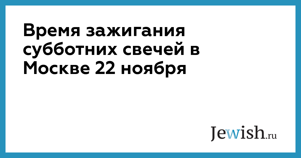Время зажигания субботних свечей в Москве 22 ноября