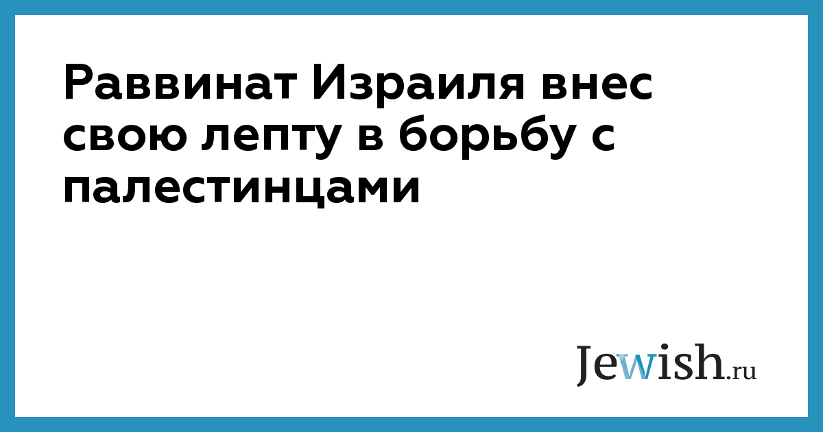 Раввинат Израиля внес свою лепту в борьбу с палестинцами