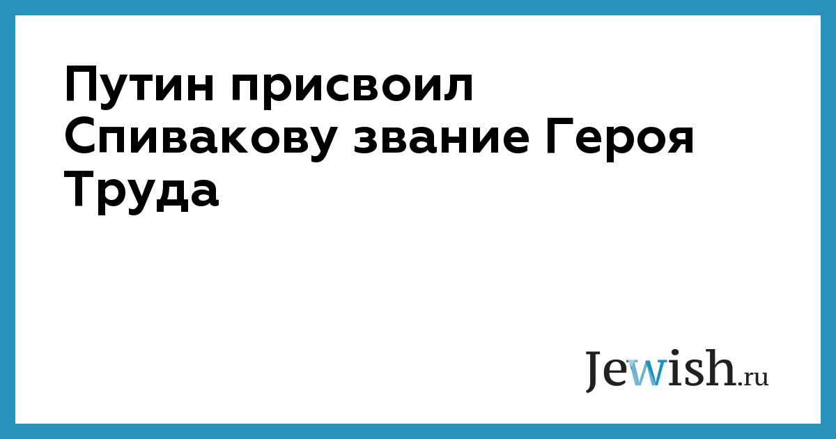 Президент России Владимир Путин подписал указ о присвоении звания Героя Труда музыканту и дирижеру Владимиру Спивакову, сообщает газета «Коммерсантъ» со ссылкой на портал правовых актов. Как отмечается в документе, Спиваков удостоен этого звания «за особые трудовые заслуги перед государством и народом.