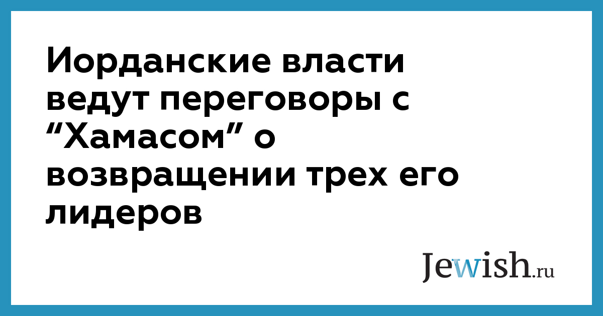 Иорданские власти ведут переговоры с “Хамасом” о возвращении трех его лидеров