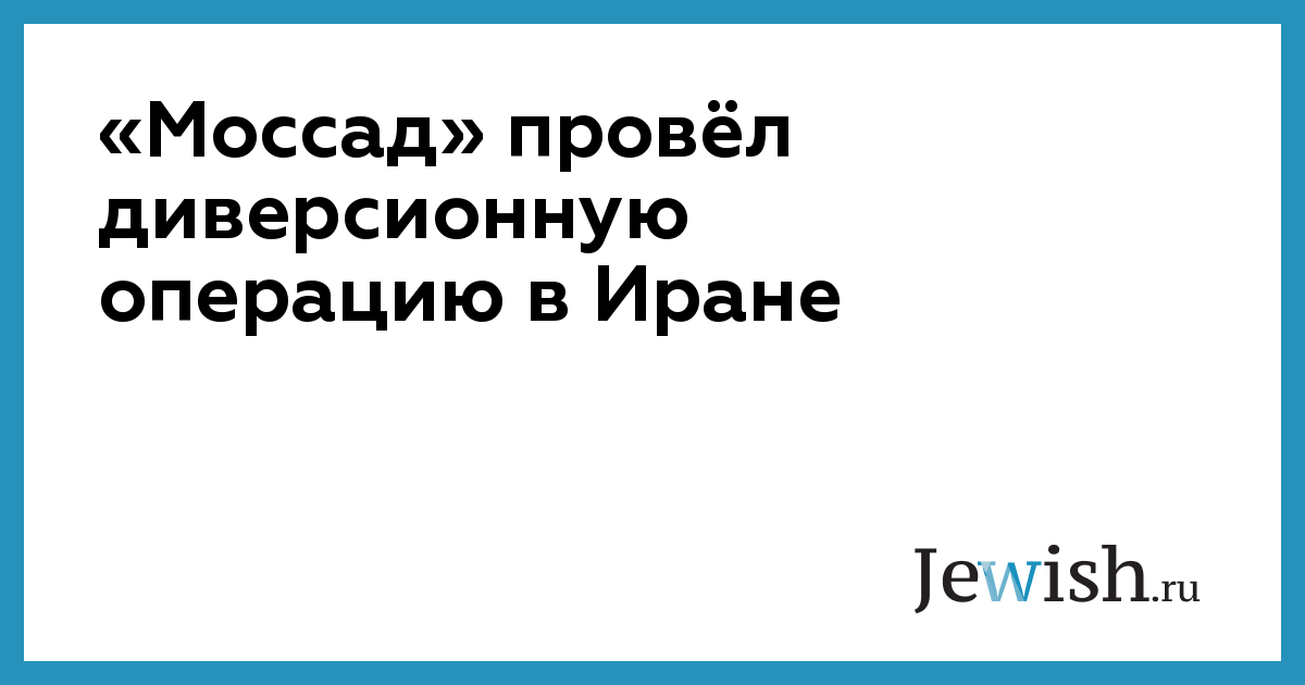 «Моссад» провёл диверсионную операцию в Иране