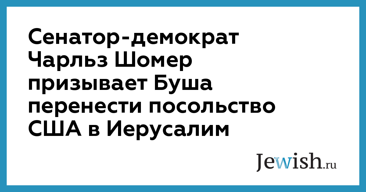 Сенатор-демократ Чарльз Шомер призывает Буша перенести посольство США в Иерусалим