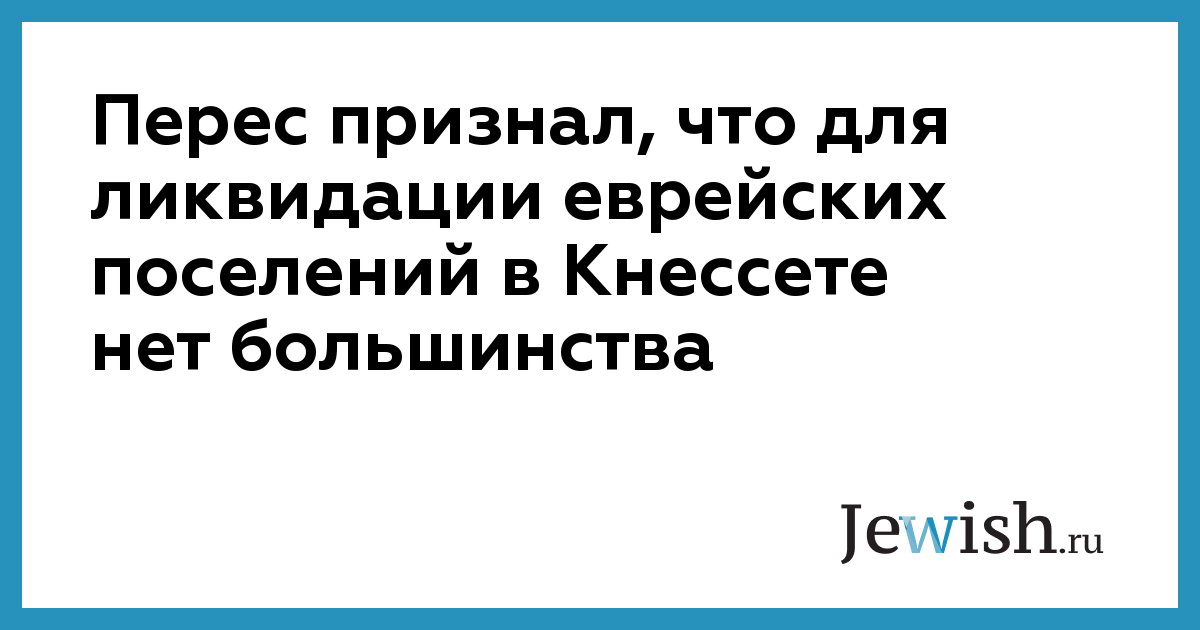Перес признал, что для ликвидации еврейских поселений в Кнессете нет большинства