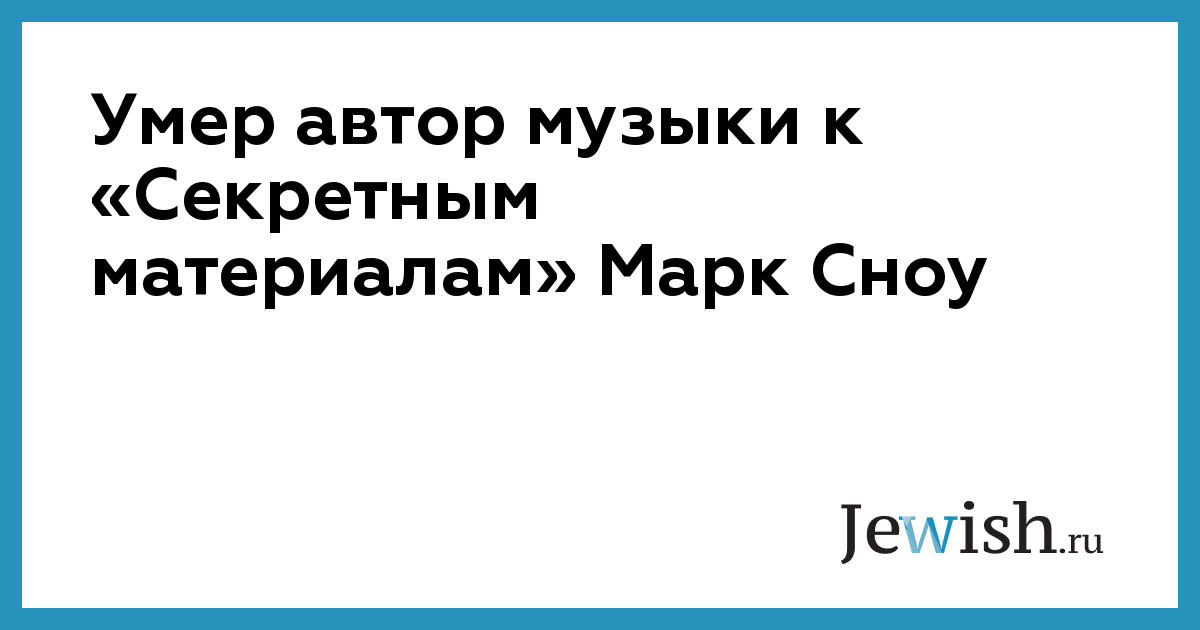 Умер автор музыки к «Секретным материалам» Марк Сноу