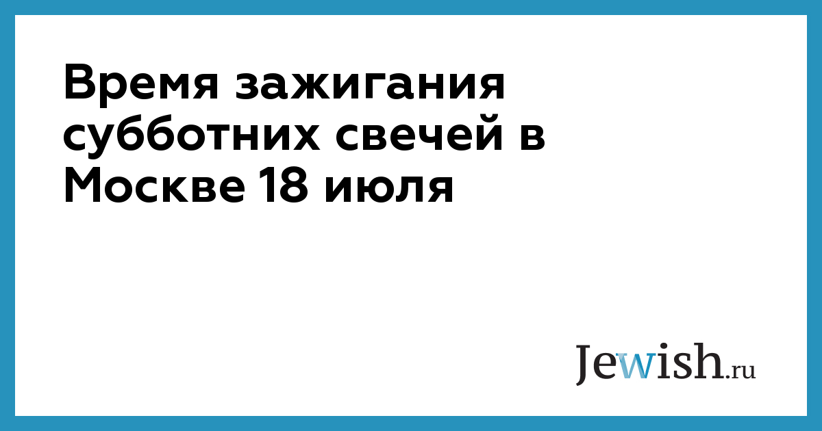 Время зажигания субботних свечей в Москве 18 июля