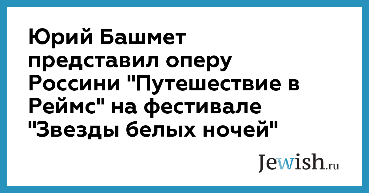 Юрий Башмет представил оперу Россини "Путешествие в Реймс" на фестивале "Звезды белых ночей"