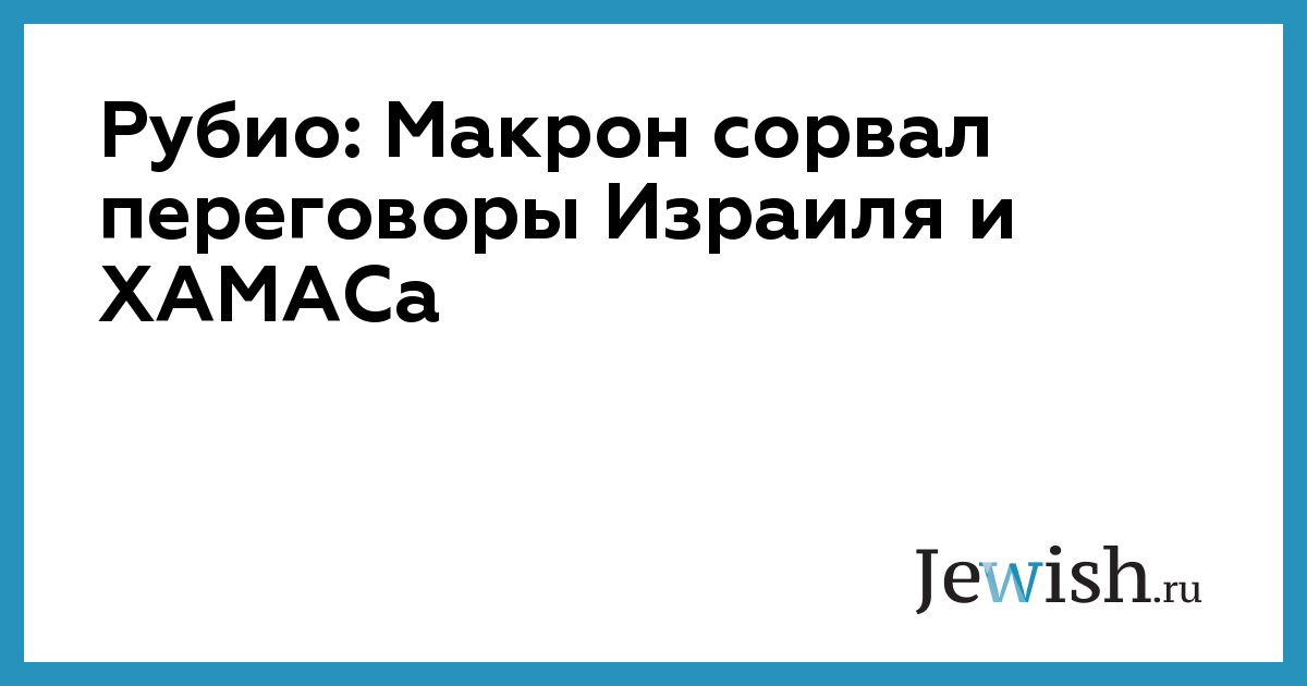 «Переговоры с ХАМАСом провалились в тот самый день, когда Макрон принял одностороннее решение о признании палестинского государства. А за ним и другие люди, другие страны заявили: “Что ж, если к сентябрю не будет прекращения огня, мы признаем палестинское государство”», – цитирует главу Госдепа JNS.