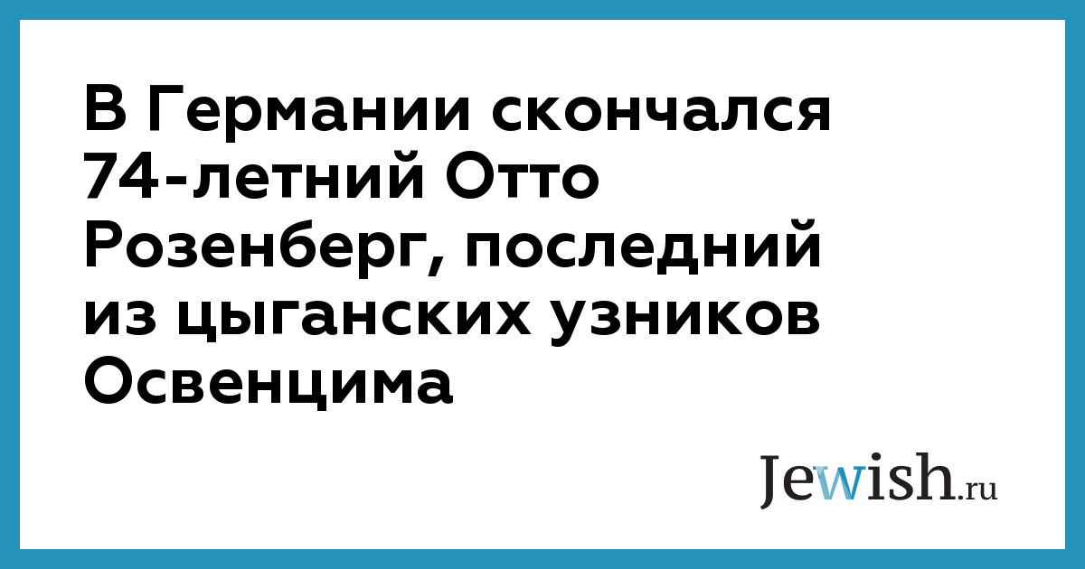 В Германии скончался 74-летний Отто Розенберг, последний из цыганских узников Освенцима