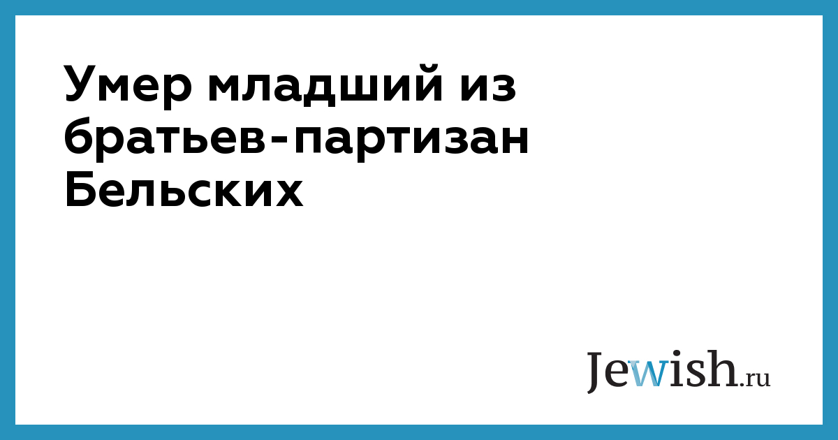 В США на 90-м году жизни скончался Арон Бельский, самый младший из основателей легендарного еврейского партизанского отряда, созданного во время Второй мировой войны на территории Белоруссии. Об этом сообщает издание The Times of Israel.