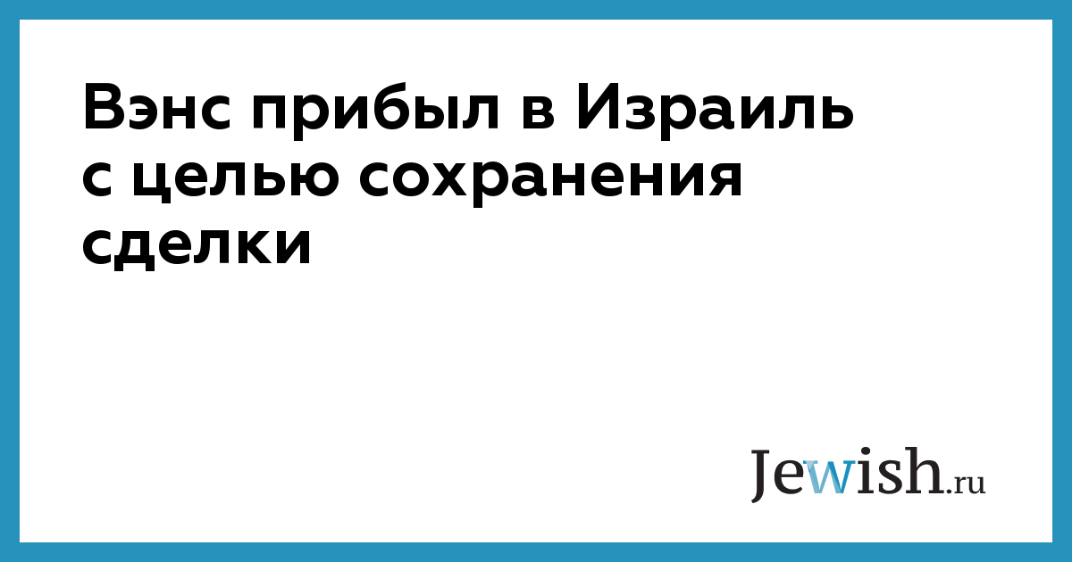 Вэнс прибыл в Израиль с целью сохранения сделки