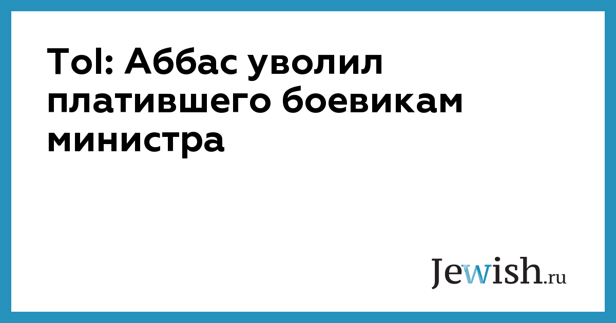 Глава Палестинской автономии Махмуд Аббас уволил своего министра финансов, разрешившего осуществлять прямые выплаты палестинским террористам по старой схеме, где конечная сумма зависела от срока заключения. Об этом со ссылкой на два источника, знакомых с ситуацией, сообщает Times of Israel. Газета отмечает, что ранее сегодня офис Аббаса через официальное палестинское информагентство Wafa сообщил, что пост министра финансов вместо Омара аль-Битар займет министр планирования и международного сотрудничества ПА Истифан Саламех.