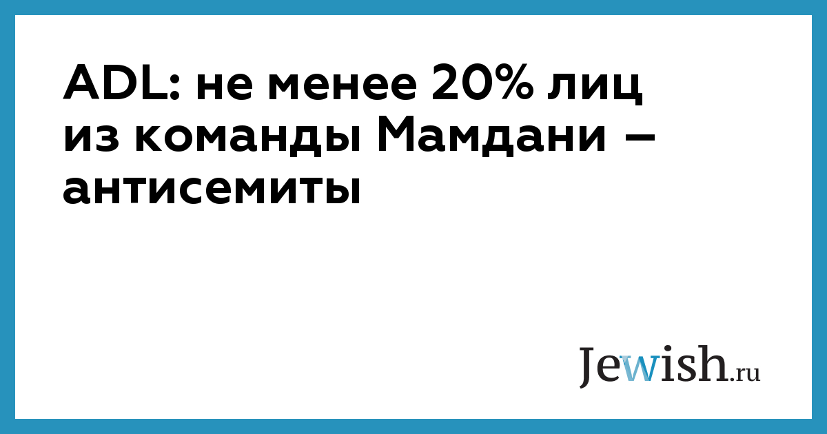 ADL: не менее 20% лиц из команды Мамдани – антисемиты