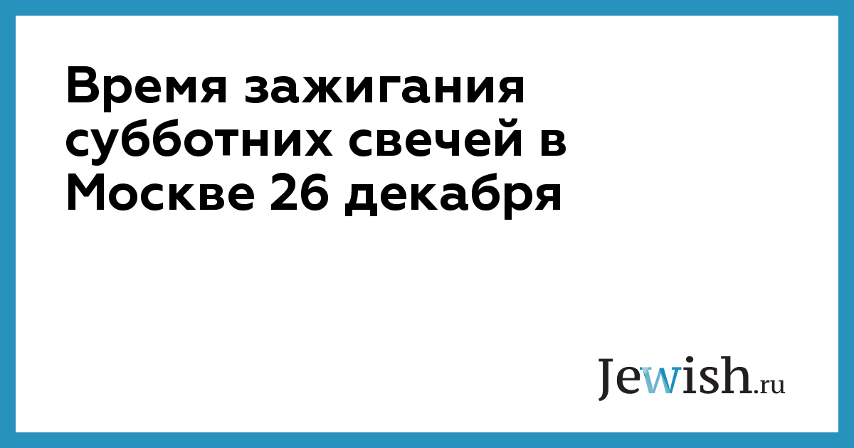 Время зажигания субботних свечей в Москве 26 декабря