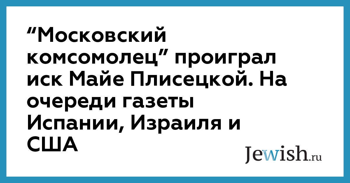 “Московский комсомолец” проиграл иск Майе Плисецкой. На очереди газеты Испании, Израиля и США