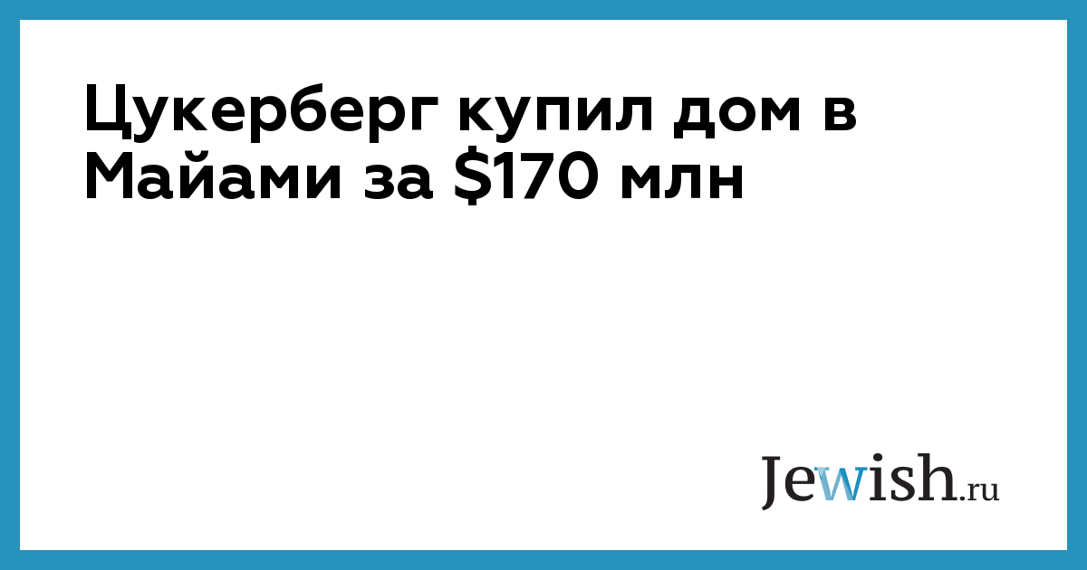 Марк Цукерберг (гендиректор Meta Platforms, которая признана экстремистской и запрещена в РФ) и его супруга Присцилла Чан приобрели строящийся особняк на острове Индиан-Крик в Майами, известном как «бункер миллиардеров», за рекордные $170 млн. Эта сделка, закрытая в начале марта, стала самой дорогой в истории жилой недвижимости округа Майами-Дейд, сообщает Wall Street Journal. Продавцами выступили знаменитый пластический хирург Аарон Роллинз и его жена Марин, которые приобрели этот участок площадью около 0,8 га в 2020 году за $30 млн и начали строительство, уточняет издание.