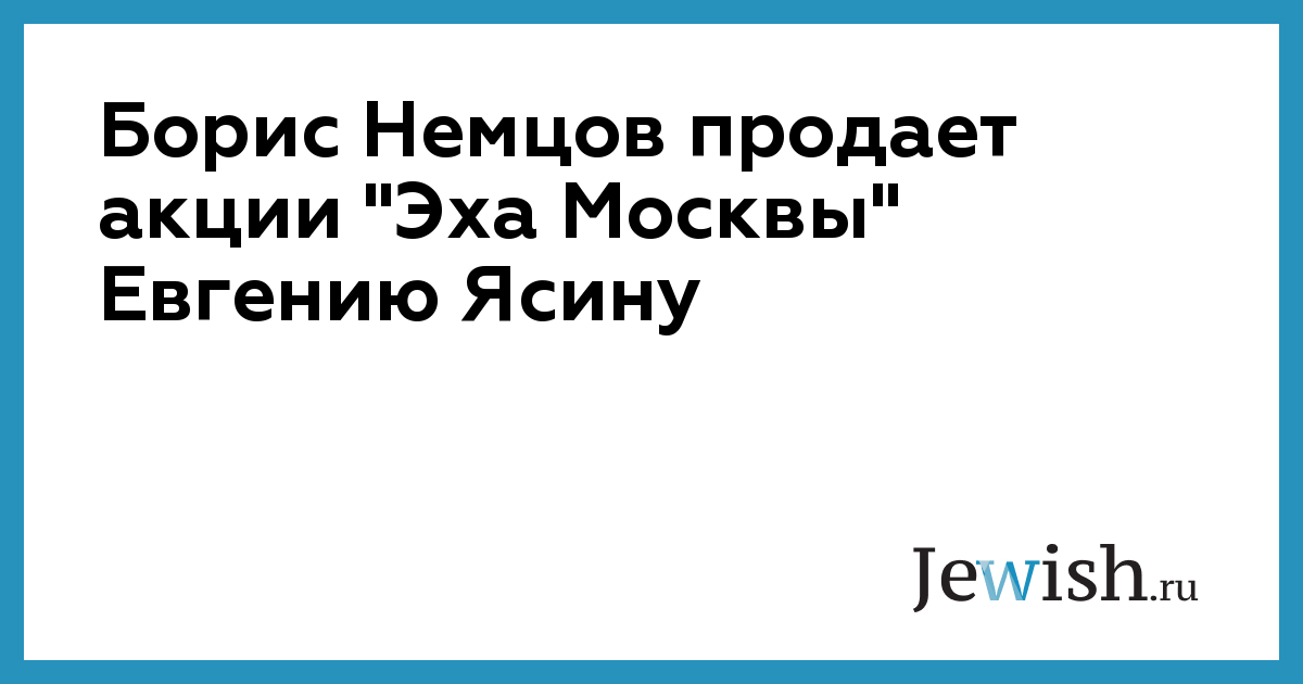 Борис Немцов продает акции "Эха Москвы" Евгению Ясину