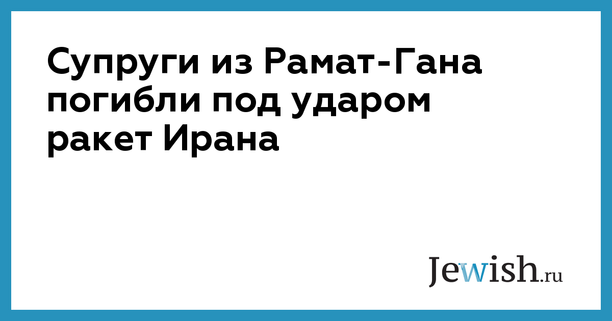 Супруги из Рамат-Гана погибли под ударом ракет Ирана