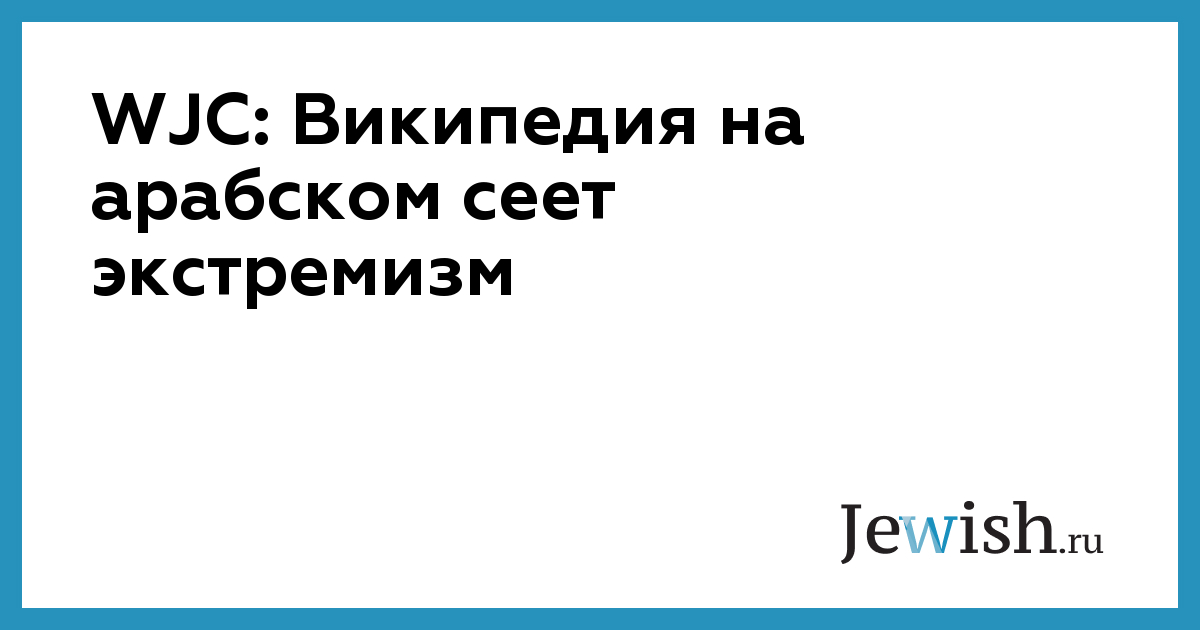 Арабоязычная версия Википедии демонстрирует систематическую предвзятость по отношению к еврейскому государству и распространяет экстремистскую пропаганду. К такому выводу пришел Всемирный еврейский конгресс (WJC), опубликовав отчет о состоянии одного из самых востребованных источников информации в мире.