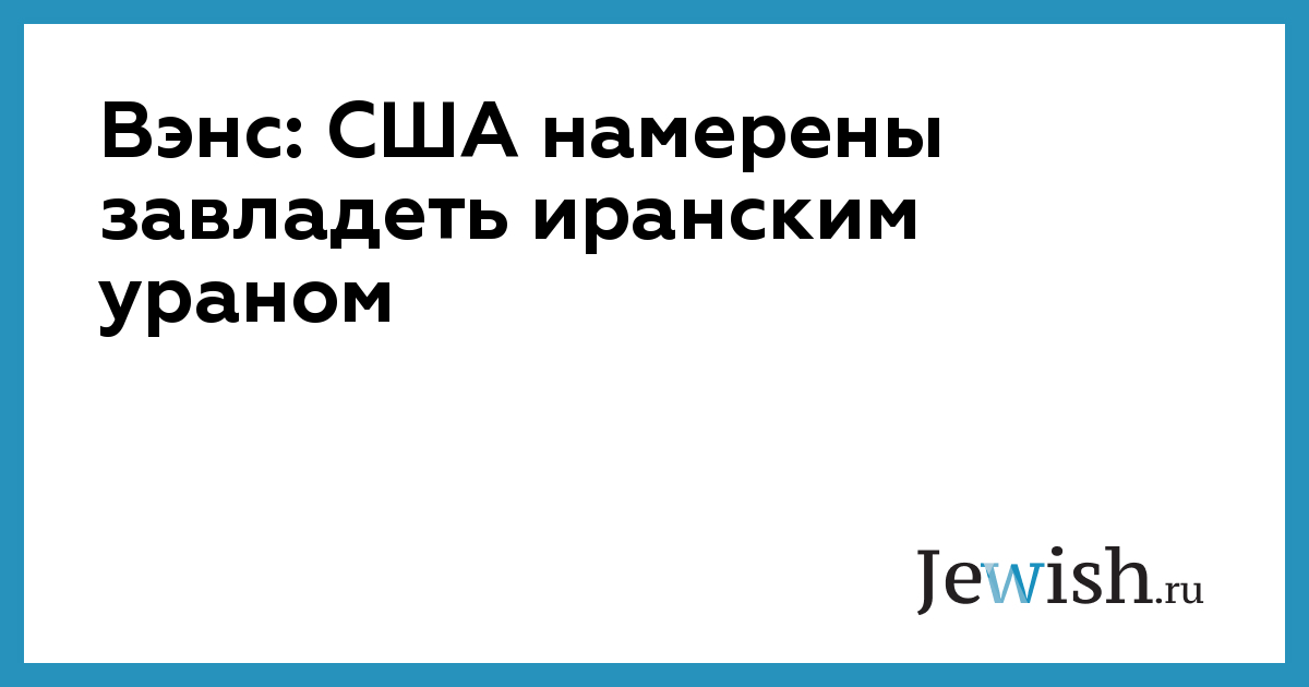 Вице-президент США Джей Ди Вэнс в интервью Fox News заявил, что Вашингтон планирует взять под контроль иранскую ядерную программу. По его словам, США настаивают на полном вывозе обогащенного урана из страны: «Мы ясно дали понять, что нам необходимо завладеть этими материалами». Помимо этого, Вашингтон требует демонтировать ключевые ядерные объекты и открыть Ормузский пролив, на что Тегеран пока не готов пойти.