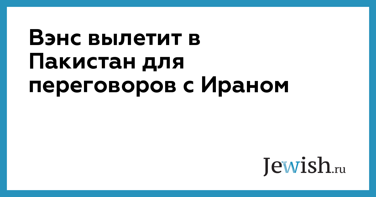 Вэнс вылетит в Пакистан для переговоров с Ираном