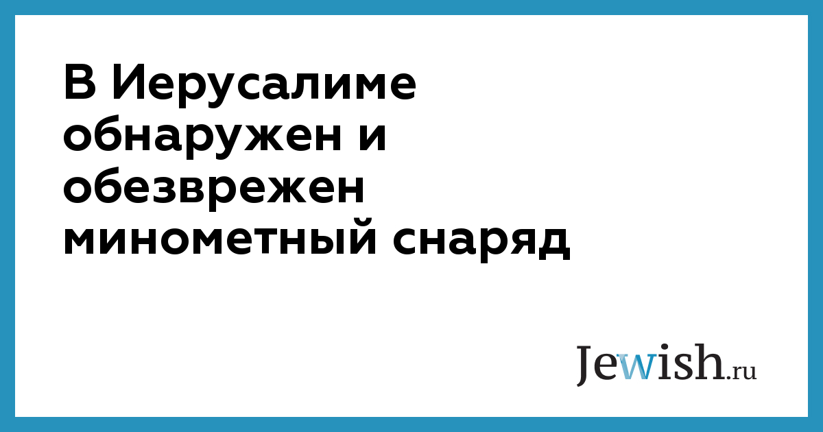 В Иерусалиме обнаружен и обезврежен минометный снаряд