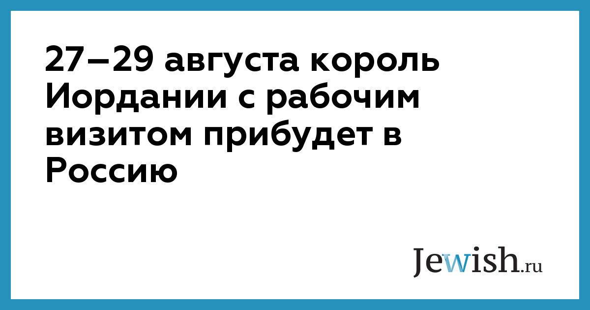 27–29 августа король Иордании с рабочим визитом прибудет в Россию