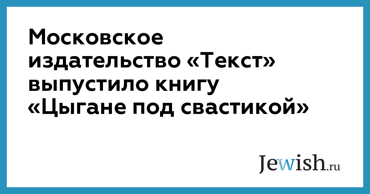 Московское издательство «Текст» выпустило книгу «Цыгане под свастикой»