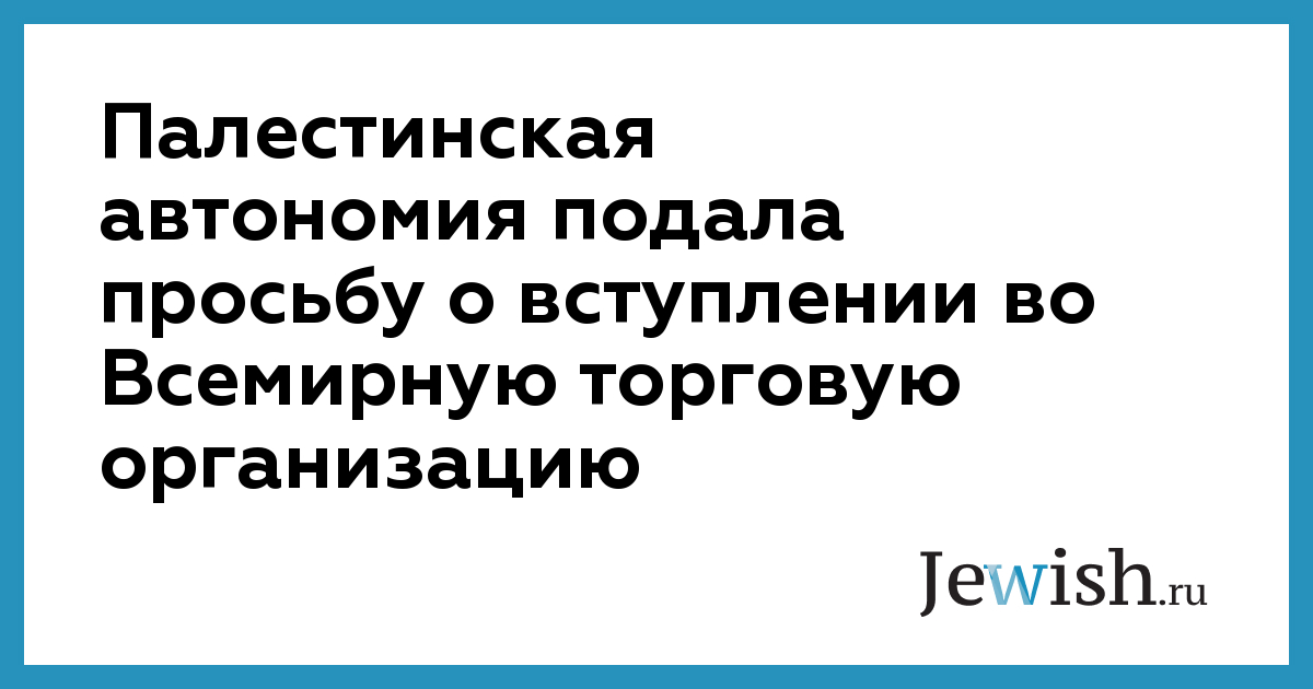 Палестинская автономия подала просьбу о вступлении во Всемирную торговую организацию