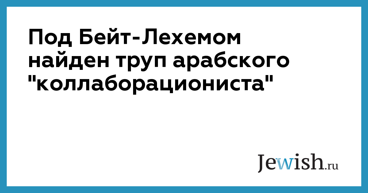 Под Бейт-Лехемом найден труп арабского "коллаборациониста"