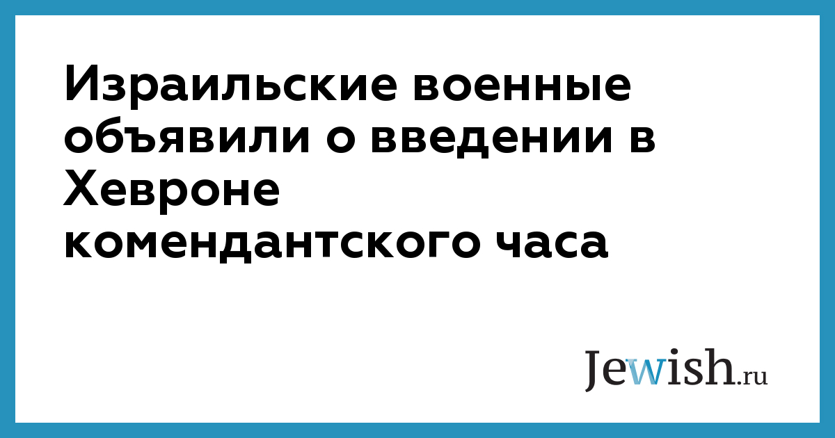 Израильские военные объявили о введении в Хевроне комендантского часа