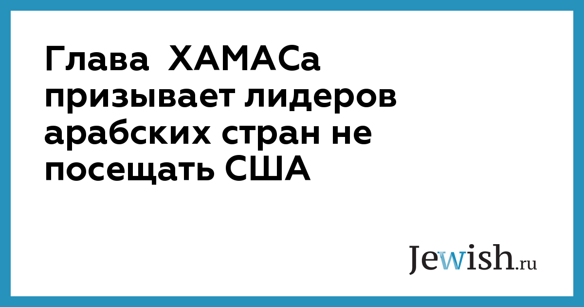 Глава ХАМАСа призывает лидеров арабских стран не посещать США